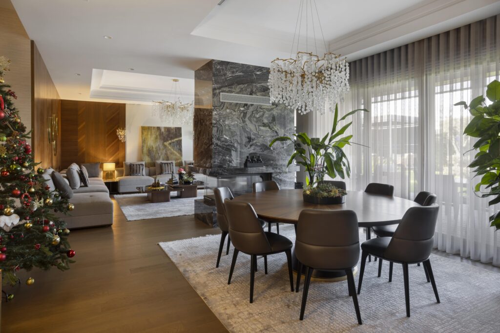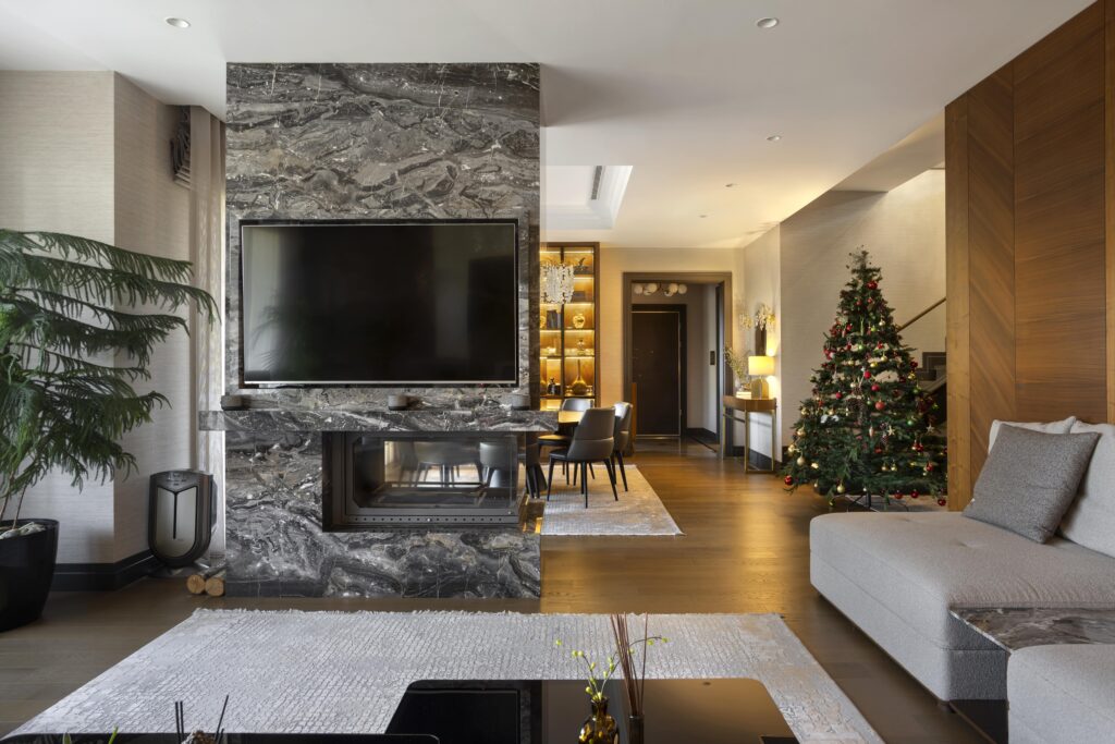 For this project, designs that meet the expectations and visual tastes of the users were developed by capturing the harmony of simplicity and elegance. With the stylish fireplace design that separates the living room and dining area, the natural warmth of wood was combined with the elegant texture of marble and the space was given its identity with wall decorations. Modern touches were made with LED light details on the glass showcase. In children’s rooms, priority was given to storage areas, and designs combining functionality with aesthetics were implemented. A special place was created where details were meticulously considered and aesthetics and functionality were integrated.